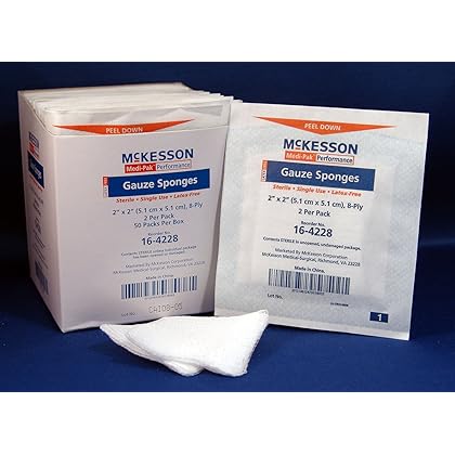 Gauze Sponge Medi-PakTM Performance Cotton Gauze 8-Ply 2 X 2 Inch Square Sterile - 100/BX (MFN # 16-4228) is best for youMedi-PakTM Performance Gauze Sponges.2' x 2' (5.1 cm x 5.1 cm), 8-Ply.Sterile.100% cotton.Appropriate for wound dressing, cleaning, prepping, or packing.Reduced linting.Packed in convenient, peelable pouch.Single use.Not made with natural rubber latex.