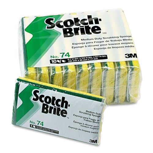 3M Scotch-BriteTM Medium-Duty Scrubbing Sponge SPONGE,BRITE,MED DTY,10PK (Pack of3) is best for youHelp keep your home or business clean. The dual-action design of the sponge features a medium-abrasive Scotch-BriteTM scouring pad on one side and an absorbent yellow cellulose sponge on the other side. An ideal companion for the most common, medium-duty cleaning jobs. Help keep your home or business clean. The dual-action design of the sponge features a medium-abrasive Scotch-BriteTM scouring pad on one side and an absorbent yellow cellulose sponge on the other side. An ideal companion for the most common, medium-duty cleaning jobs. Global Product Type: Sponges-Scrub Pad; Sponge Type: Scrub Pad; Shape: Rectangular; Material(s): Cellulose; Scouring Pad.