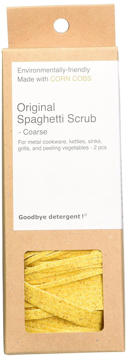 Goodbye Detergent All Natural Spaghetti Scrub, Set of 2 is best for youLong-lasting, abrasive scrubbers help you cut back on detergent and other cleaning supplies. All-natural abrasives tackle tough jobs without soap or detergents. Coarse scrubber made of corn, gentle scrubber made with peach pits. Made in Japan. Each scrub lasts up to 4-6 months; Dries quickly - won't develop mold, smell, or rust; Comes in coarse and gentle for different types of dish; Reduces the need for wasteful detergents and soaps; Works with natural abrasives; Made from recycled, all...
