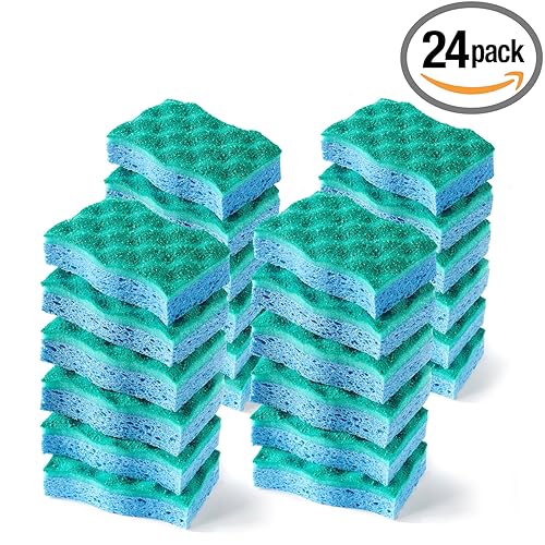 O-Cedar Multi-Use Scrunge Scrubber Sponge (Pack of 24) is best for youThis patented scrubber sponge is specially recommended for Teflon coated cookware by Dupont®. Plus, the rippled, no-scratch surface rinses clean versus traditional scrubbers that trap and collect dirt.