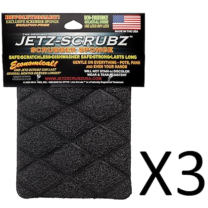 The Original Magic Jetz Scrubz J27 Scrubber Sponge Rectangle, Pack of 3 is best for youThey use them in the royal palace - but that's only one good reason to try Jetz Scrubz. There are a few others. For starters, here is a list of the things they won't scratch - chrome, copper, stainless steel, anodized surfaces, non-stick coated cookware, glass, crystal, porcelain, china and ceramic. Here's another reason - they'll clean up a big mess and afterward can be thrown right in the dishwasher for cleaning. Try it and you'll agree, this is a scrubber fit for royalty. Pack contains 3 sponges