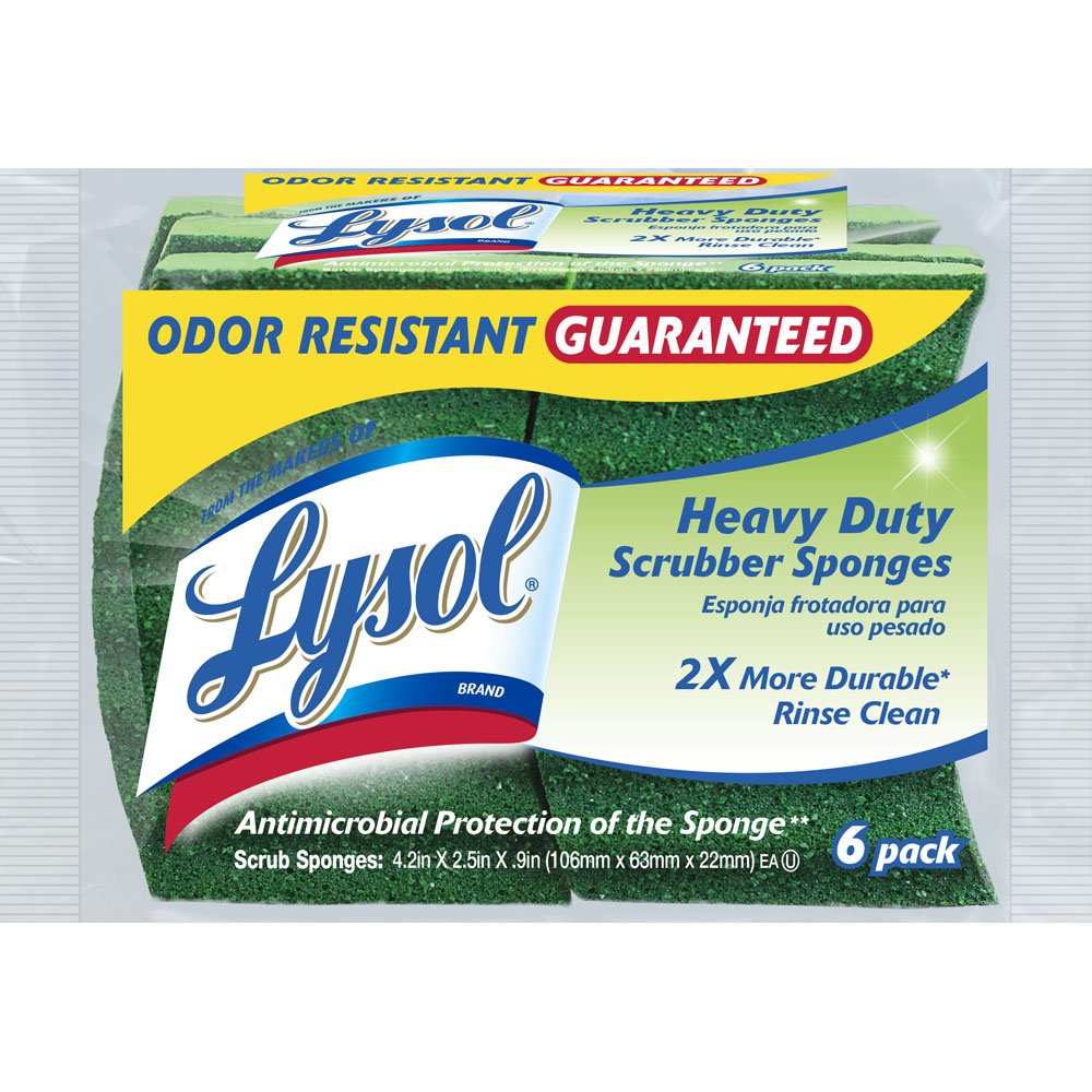 Lysol Durable Scrub Sponges, 6-Pack is best for youThe Lysol Scrub Sponges are 2-times more durable than a leading cellulose sponge. These sponge scrubbers are odor resistant because they inhibit the growth of odor causing bacteria on the sponge. Soft and flexible, they maintain their shape and won’t harden or crack. The unique scrubber material works hard to tackle tough messes but rinses clean. These sponges may scratch (test first on an inconspicuous area). Comes in a 6-pack. Over the years, Lysol has expanded and improved their products to meet the world’s ever-changing needs and today, Lysol products, including cleansers, disinfectants and hand soaps are widely used in homes, schools and businesses around the world.