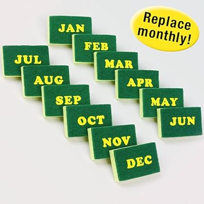 Calendar Sponge - (12 pack) - One Year Supply is best for youAbout the Calendar Sponge The only sponge system on the market that reminds you when its time to change your sponges! Sold as a 1 year supply of the highest quality sponges, with each calendar month printed on the face, Calendar Sponge gives you a fresh sponge for each month of the year. Over the course of a month, billions of bacteria grow on your kitchen and cleaning sponges. While traditional methods of cleaning sponges reduce these germs, they do not completely eradicate the harmful bacteria. As a result, every time you use an old, dirty sponge, you have the potential of passing bacteria from the sponge to your dish, food or surface areas. To help reduce the spread of germs and bacteria in your kitchen, office or home, experts agree that you should clean sponges between uses and replace your sponges every month. We make it easy to remember to change your sponges!