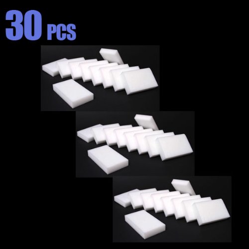 Pack of 30, MAGIC SPONGE ERASER CLEANING MELAMINE FOAM CLEANER, ECO-FRIENDLY 100% BASF MATERIAL MP30 is best for youEco-friendly Magic Sponge No Detergent, Just Need Water! * Made of eco-friendly high technological advanced melamin form consisted of microfibre Multi PurposeTile, Living Room, Bathroom, Office, Car, Bike, Toys, Various Kinds of Appliances, etc * Higienic disposable cleaner with antibiotic action * Effortlessly removes dirt and smudges! * Removes the smudged dirt with just water alone! * No need any detergent * Prevention of housewife's eczema! How to Use 1. Absorb water with Eco-friendly Magic Sponge and Squeeze out gently. 2. Gently rub sponge on dirty surface to remove the dirts and smudges. 3. Rinse the dirty sponge with water after use and dry it. 4. Dispose of properly after multiple uses. 5. It can ge used with different sizes by cutting with knife or scissors according to purpose. Cautions 1. Do not scrub to hardly. it may a reason of sponge break. 2. Do not sterilize sponge at hot water or detergent. 3. Do not use for Glossy(Waxing), polished surface like Car, Monitor Screen and other. 4. Do not scrub at skin. Do not eat.(Recommend to use gloves when you use it)