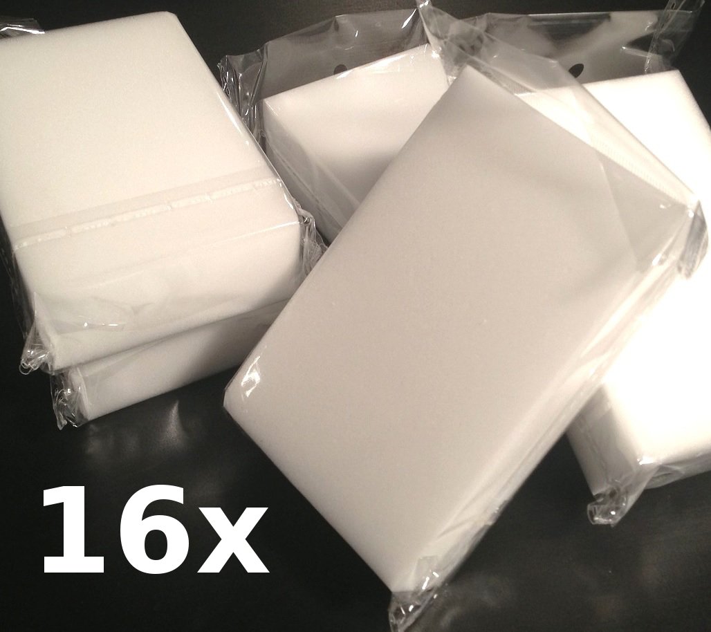Total 16 Pcs, Magic Sponge Cleaning Pads Clean Sponge [Value Pack], Magic Eraser Eco-Friendly, BIG SIZE. is best for youEco-friendly Magic Sponge No Detergent, Just Need Water! * Made of eco-friendly high technological advanced melamin form consisted of microfibre Multi PurposeTile, Living Room, Bathroom, Office, Car, Bike, Toys, Various Kinds of Appliances, etc * Higienic disposable cleaner with antibiotic action * Effortlessly removes dirt and smudges! * Removes the smudged dirt with just water alone! * No need any detergent * Prevention of housewife's eczema! How to Use 1. Absorb water with Eco-friendly Magic Sponge and Squeeze out gently. 2. Gently rub sponge on dirty surface to remove the dirts and smudges. 3. Rinse the dirty sponge with water after use and dry it. 4. Dispose of properly after multiple uses. 5. It can ge used with different sizes by cutting with knife or scissors according to purpose. Cautions 1. Do not scrub to hardly. it may a reason of sponge break. 2. Do not sterilize sponge at hot water or detergent. 3. Do not use for Glossy(Waxing), polished surface like Car, Monitor Screen and other. 4. Do not scrub at skin. Do not eat.(Recommend to use gloves when you use it)