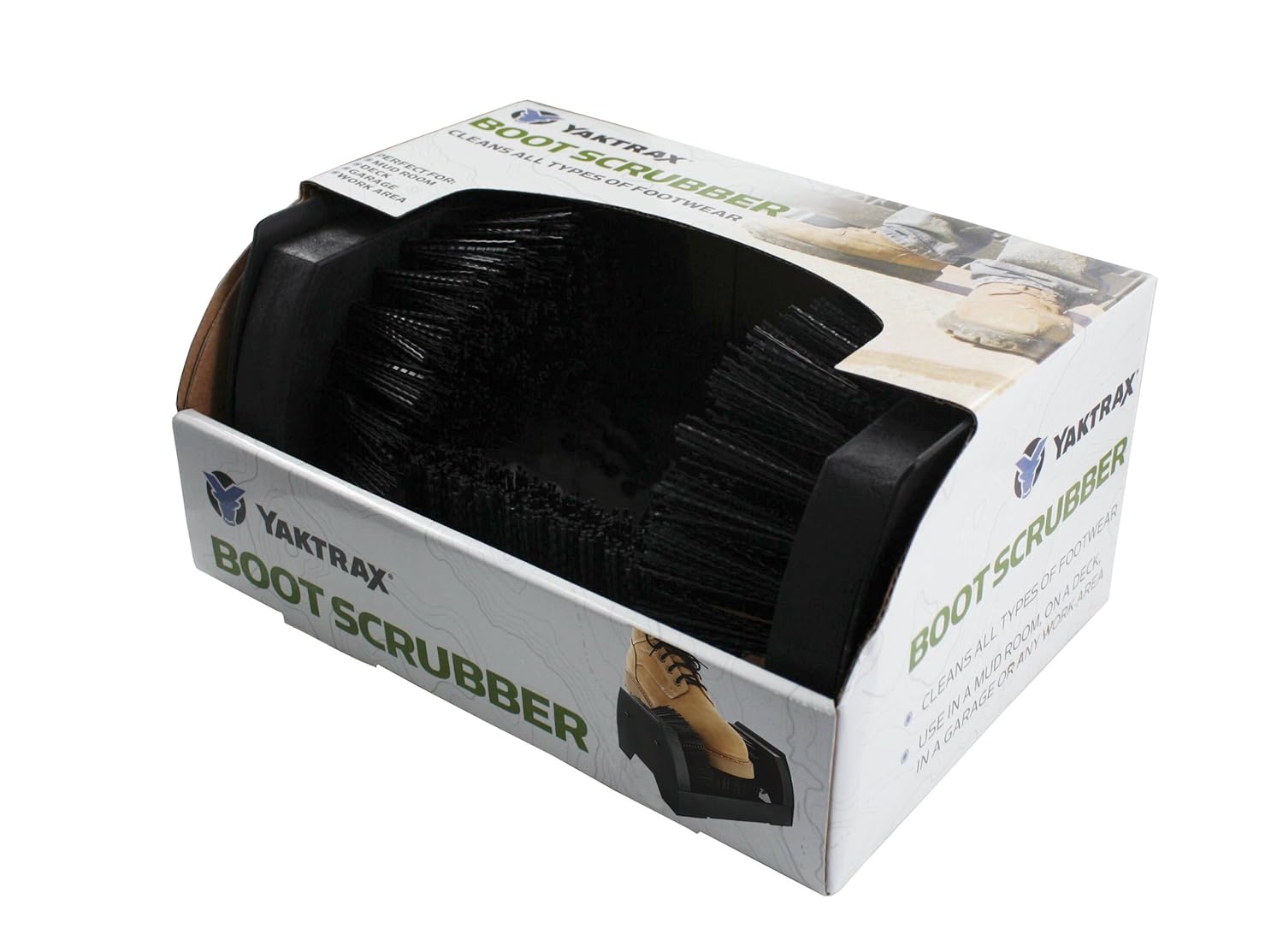 Yaktrax Boot Scrubber is best for youYaktrax boot scrubber with wood block and 2' side bristles and 1' bottom bristles can be easily mounted on any flat surface. Features:- steel, wood- heavy duty boot scrubber- metal frame''