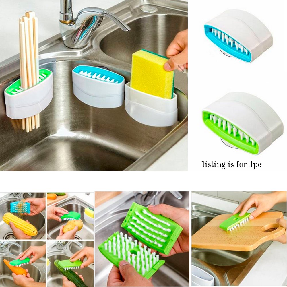 1 Sink Cutlery Cleaner Easy Dish Washing No More Sponge Brush Utensil Scrubber is best for you1 Pc Sink Cutlery Cleaner Easy Dish Washing No More Sponge Brush Utensil Scrubber Randomly Color Shipped ! Cutlery Cleaner makes mealtime cleanup fast and easy., just add detergent and clean away. It features a suction cup for easy attachment to the inside of the sink and provides strong grip. Is it hard to wash the cutlery and always wash not clean? If yes this brush cleaner can be washed easily. Use knives, forks, shovel, scissors, etc, can brush clean and can be dissembled as a kitchen brush, or fruit vegetable cleaning brush. Its simple convenient and multi purpose, take out the sucker, squeeze the bush vigorously, take out the brush, and separate the brush to use. Edge is smooth and detailed, can be disassembled, close brush, wash thoroughly. Colors: Blue or Green, random color shipped Cleans knives, cutlery and utensils, includes non-scratch bristles Material: PP + PVC 1 sucker cutlery brush cleaner