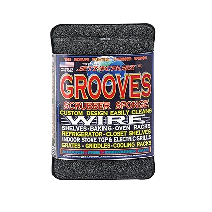 Jetz-Scrubz Grooves Scrubber Sponge, 5.75" x 3.75" is best for youJetz-Scrubz grooves scrubber sponge allows Fast and easy cleaning for all wire surfaces without scratching. Uniquely designed with grooved indentations, it hugs wire surfaces for a thorough cleaning in a snap. A favorite among cleaning supplies for oven racks, cooling racks, indoor stovetop grills, electric BBQ grills, grates, griddles and more. The scratch-free material is safe for delicate surfaces. Jetz-Scrubz grooves scrubber sponge is proudly made in the USA. It's economical, reusable, wear-and-tear resistant for more uses with less waste. Keep it clean and Sanitized between uses. Just toss it in the dishwasher.