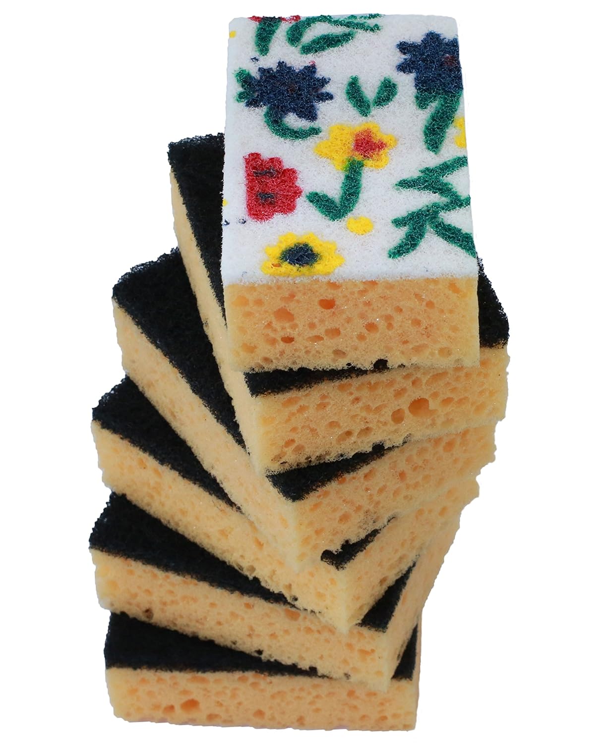 Okleen Multi-Use Scrub Sponges for Kitchen & Outdoor Usage, 6-Count is best for youOkleen sponge is an effective cleaner for dirty surfaces in the kitchen (as a kitchen sponge), garage, and outdoors. You can use sponges with detergents or without. Sponge has two layers - scouring layer and special foam layer 'Sea Foam'. It provides more cleanser's foam and better removes dirt from the surface. And the scouring layer of fiber has a brand special influence on the dirty surfaces. One pack has two types of sponges - 5 cleaning sponges with heavy-duty fiber for dishes or other solid surfaces and 1 cleaning sponge with delicate fiber for Teflon. Scrub sponge with delicate fiber for Teflon has a beautiful picture so you don't confuse sponges. With Okleen Scrub Sponges you can use less detergent and get more foam for cleaning surfaces. In that way saving money and quality improvement of washing are possible. Okleen Multi-Use Scrub Sponge has a size - 3.9 x 2.7 x 1.4 inches.Package dimension of pack of 6 - 5.4 x 3.8 x 2.5 inches.CAUTION!!! Before use test scrub sponge first on the inconspicuous area and allow to dry for verifying no surface damage, as some surfaces could be scratched. For cleaning sponge just rinse under running water with detergent. Do not put scrub sponges in microwave, dishwasher or boil objects. Not for aquarium use.