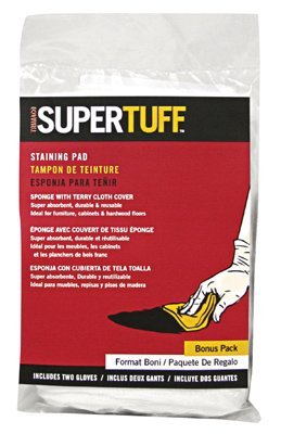 Trimaco 10101 Terry Cloth Sponge Staining Pad - Quantity 12 is best for youStaining Pad, Terry Cloth Covered Sponge, Applies All Stains To Any Surface, Use For Staining, Antiquing, Waxing, Polishing & Washing, Bonus Pack Includes 2 Disposable Vinyl Gloves.