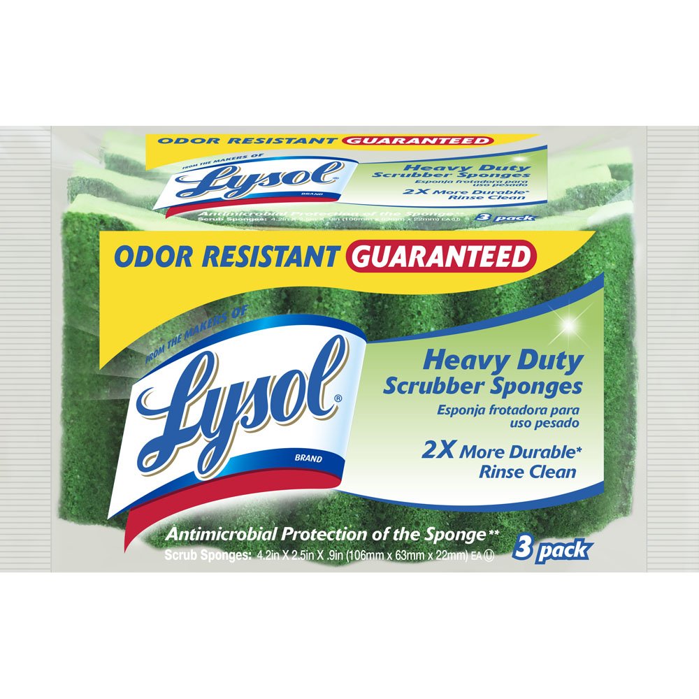 Lysol Heavy-Duty Durable Scrub Sponges, 3-Pack is best for youThe Lysol Scrub Sponges are the perfect universal cleaning tool to have around the house. These super absorbent sponges are safe on most household surfaces. The sponges are strong and durable and come treated with an antimicrobial product that inhibits the growth of odor causing bacteria and mold. These sponges works great in kitchens, bathrooms, basements and almost any other surface around and outside the house. Comes in a 3-pack. Over the years, Lysol has expanded and improved their products to meet the world’s ever-changing needs and today, Lysol products, including cleansers, disinfectants and hand soaps are widely used in homes, schools and businesses around the world.