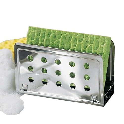 Miles Kimball Silver Sponge Caddy is best for youAiry, upright sponge caddy prevents sponges from soaking in unsanitary mildew and water, the prime spot for bacteria. Stainless steel sponge holder won't rust; 5' L x 2' W x 3' H. Sponges air dry naturally!