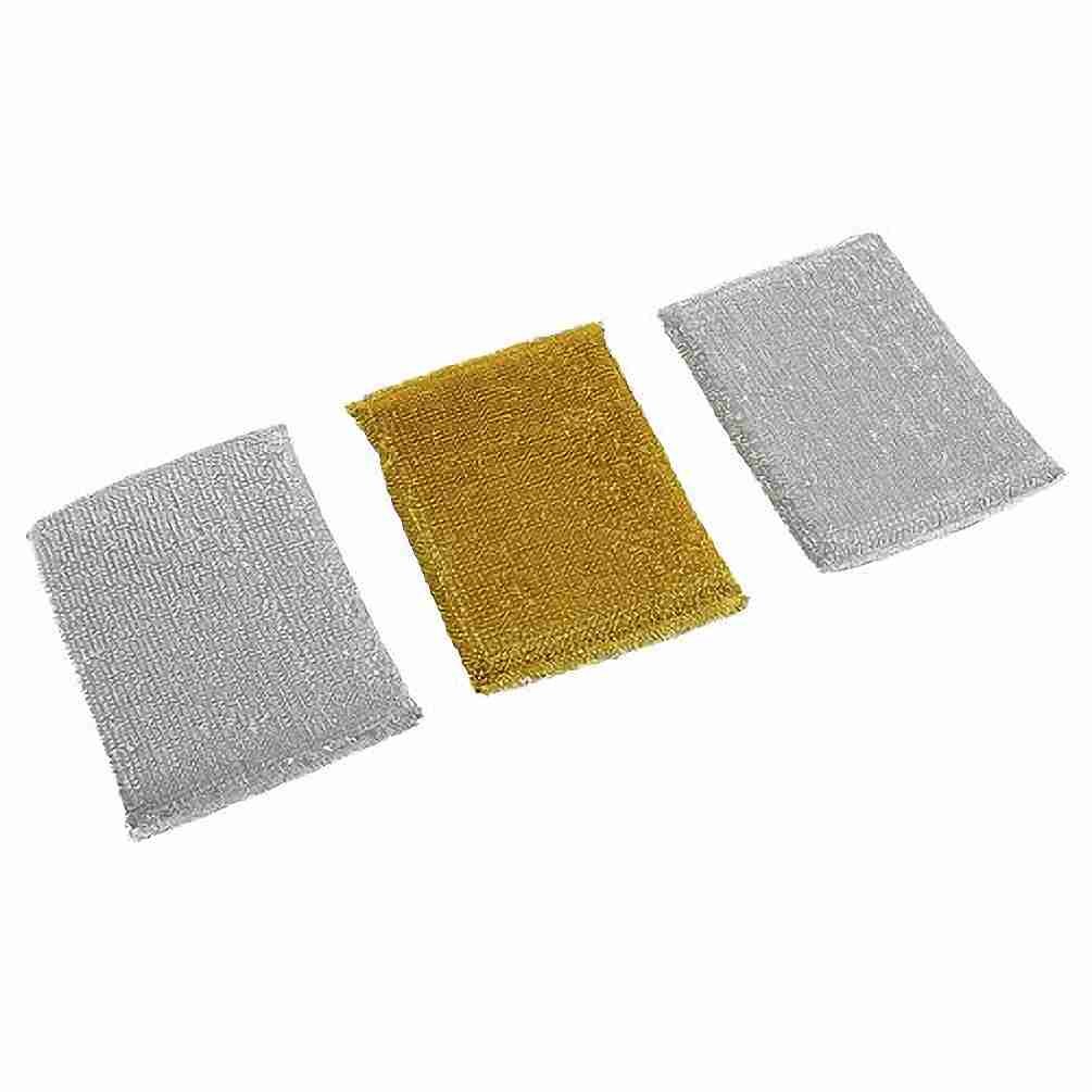Rectangle Metallic Thread Design Scrub Cleaning Sponge Pad 3 Pcs best Sponges