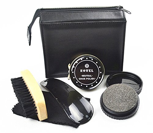Shoe Shine Care Set Black & Neutral Polish Brush Kit for Boots Shoes is best for youFeatures: Shoe Care Kit Includes: Shoe Horn, Cleaning Cloth, Shoe Brush, Solid Shoe Polish Tin. Perfect when you travel and need to give your shoes a quick shine. Have all the things you need for a professional looking shoe shine 1* rectangle cleaning shoe brush 9 X 3.5 X 3 cm 1* Colorless leather shoe polish 30 gm 1* instant shoe shine sponge Diameter 5.5 cm 1* micro fiber polish cloth 24 X 10 cm 1*shoehorn Package Includes: 1 x Shoe Polish Kit with Leather Case