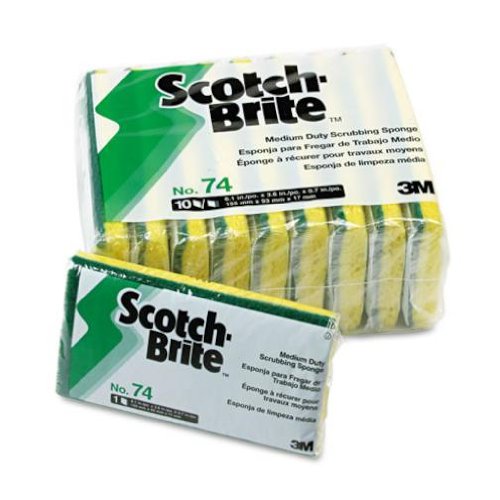 Scotch-Briteâ"¢ Medium-Duty Scrubbing Sponge - MMM74CC is best for youHelp keep your home or business clean. The dual-action design of the sponge features a medium-abrasive Scotch-Brite scouring pad on one side and an absorbent yellow cellulose sponge on the other side. An ideal companion for the most common, medium-duty cleaning jobs. Sponge Type: Scrub Pad Materials: Cellulose Scouring Pad Shape: Rectangular Width: 3 1/2amp;quot;.