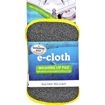 2Pack! E-Cloth Washing Up Pad is best for you2 Pack! - MORE EFFECTIVE KITCHEN CLEANING AND BATHROOM CLEANING WITH LESS EFFORTNew! 2012Includes one (1) 7' x 4' x 7/8' Washing Up PadDual sided pad for cleaning the toughest cleaning tasksScrubbing side (grey) makes light work removing stuck-on food residue and hardened messese-cloth fiber side (yellow) cuts through grease and grimeIdeal for pots and pans, baking dishes, plates, cutleryMachine wash regularly at 140°F (high heat).Do not use bleach or fabric softener. Guaranteed for 300 washes without losing performance.e-cloth fiber side: 80% polyester / 20% PolyamideMade in KoreaWhere to Use:Kitchen Cleaning, Bathroom Cleaning, Pots and Pans, baking dishes, plates, cutlery, showers, sinks, tubs, barbeque grills, etc.Kitchen Cleaning is more effective due to the strong scubbing power of the grey side and the grease gathering of the yellow microfiber side.Bathroom Cleaning beneifts most from the scrubbing power of the grey side adding extra power to tough bathroom dirt and mildew.Scrubbing side made from polyester threads surrounded in tough non-scratching nylon and then made into e-cloth's scrubbing fabric.Can be used on non-stick surfaces without scratching or damaging the surfaces.e-cloth fiber side is made from the highest quality cleaning microfiber fabric available in the world.Sponge material between fabrics.