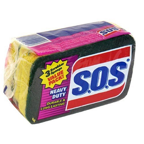 S.O.S. Scrubber Sponge, Heavy Duty, Value Pack 3 sponges is best for you4.5 x 2.5 x 0.9 in. Durable & long lasting. Ideal for many cleaning jobs in the kitchen and bathroom. Angled shape gets into hard-to-reach places. Cuts through tough kitchen messes. Bigger and thicker than ordinary scrubber sponges. S.O.S tough cleaning power from a brand you can trust.