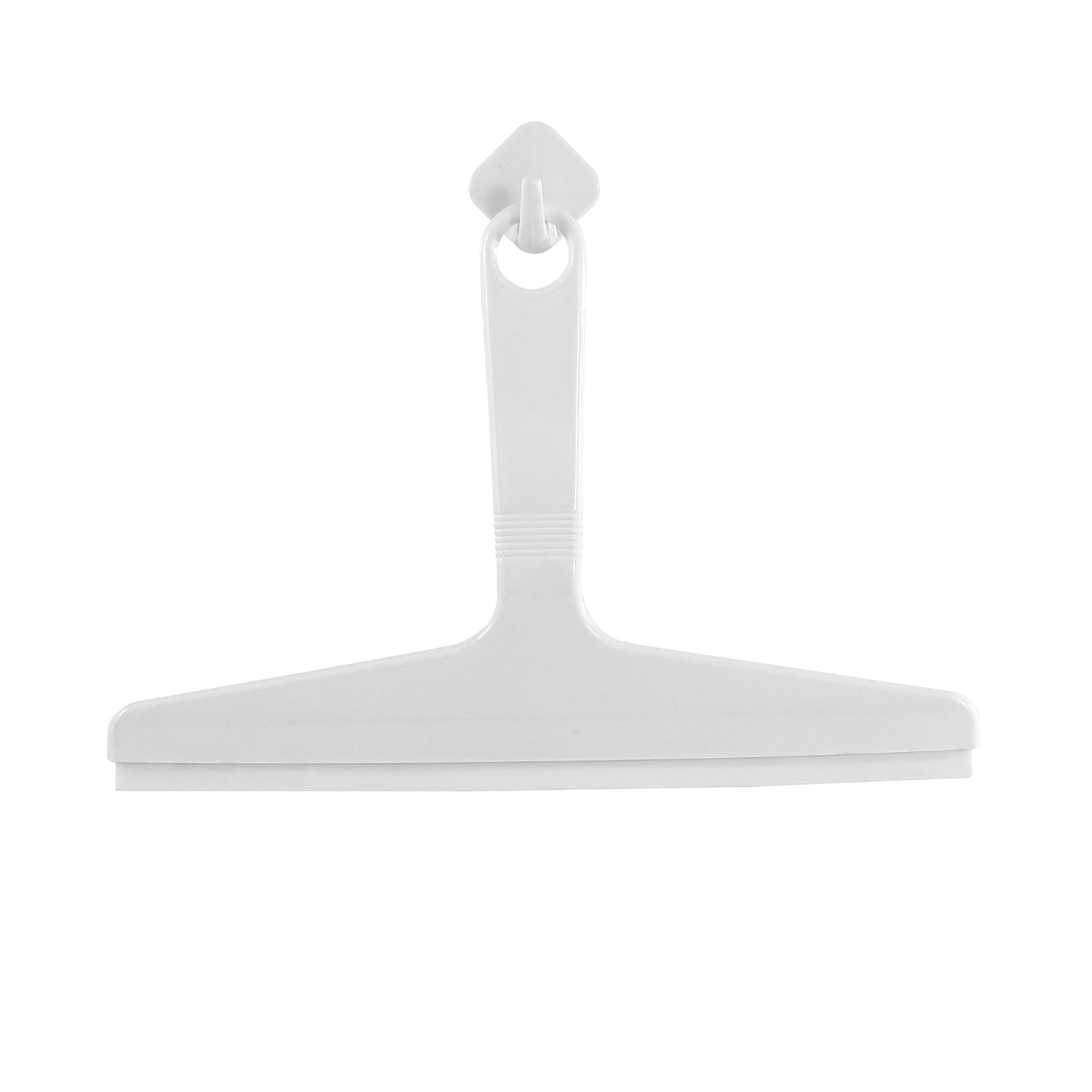 Spectrum Diversified 59300 Super Squeegee with Hook, 12", White is best for youKeep your shower clean and streak-free with the 12' Shower Squeegee with Adhesive Hook. Use the squeegee regularly on your shower doors, tile and tubs to prevent water spots and unwanted residue. The flexible blade makes cleaning windows, mirrors and other smooth surfaces a breeze. Made of durable plastic, the high-strength handle features a loop for easy hanging on the included adhesive hook.