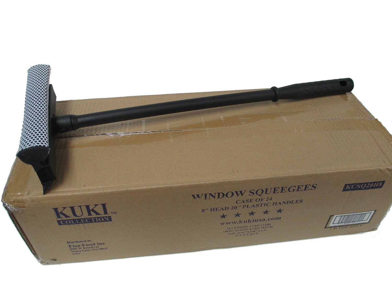Kuki Collection Window Squeegee with Handle Case is best for youKuki Collection Window Squeegees Kuki Collection provides high quality restaurant, hospitality, and gas station supply products. Our window squeegees are perfect for use in any home, gas station or truck stop, and the squeegee heads are easily replaceable. These squeegees are sold by the case, and come with 24 squeegees. 8' wide head and 20' long plastic handle. Price: $2.79 each X 24 per case = $66.96 Plastic Handle Length: 20' Squeegee Head Width: 8' Case Gross Weight: 18.75 lbs Case Net Weight: 16.5 lbs Case Dimensions: 22' x 9.1' x 7.87'